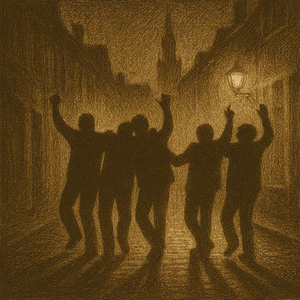 Wel in een vrij troosteloos stadje, dat wel. Overal hangen ‘te koop’ bordjes, en naar Belgische standaarden zijn veel gevels hier op standje ‘alles opgegeven’ aan het hangen. En toch is het er leuk. Ik kom er graag. Enkele vrienden zeiden dat ze ook graag eens mee gingen. Dus gaan we met een groep. En aangezien we allemaal van drinken houden, gaan we een kroegentocht doen. Gemodelleerd naar de film The World’s End: een Golden Mile. Oftewel – 12 cafés, 12 bier. Ik heb de toer uitgestippeld. Er is zelfs een mooi routekaartje ontworpen. Met vakjes om de cafés af te vinken. Alsof we de tel kwijt zouden raken. Het gezelschap is illuster. De man die alle WK trauma’s compleet heeft. De man die eindelijk zijn boek af heeft. De man die telkens het hele land op de kast krijgt. Ik. En De Opperpater. Vijf vrienden. Vijf kameraden. Vijf drinkebroeders. Vijf stoere kerels tegen de hele wereld. Met elk een glas in de hand.