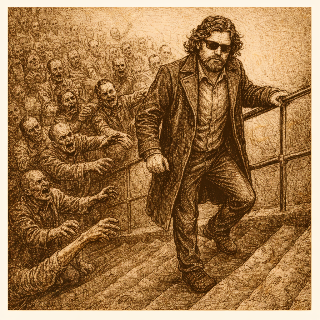 Ontegenzeglijk heb ik wel leuker gedroomd. Het huis krioelt ervan en ik kan me nergens veilig terugtrekken. Geen deur stopt ze. Doorheen het hele huis ben ik op vlucht voor zombies. Ze klauwen en grommen. Het is rete-irritant. Ik roep naar de zombies dat ze me even met rust moeten laten. Dat ik moe van ze word. Of ze niet even zichzelf kunnen vermaken of zo. Er staat bier in de koelkast, roep ik. Geen reactie.