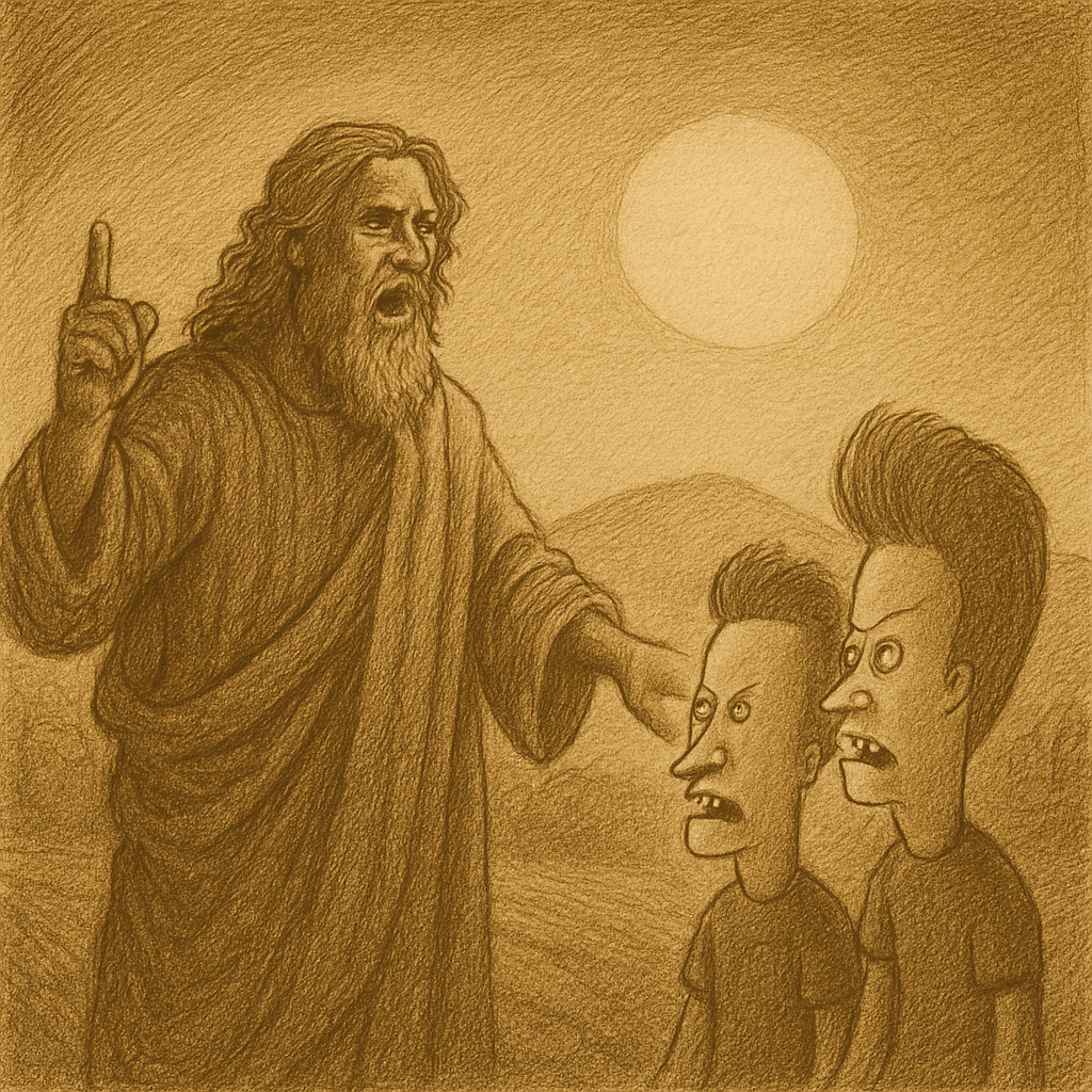 Zo gaat het door en door. Overal grinniken ze om. Beavis gaat om de twintig bladzijden op zoek naar toiletpapier. Butt-head likt een kikker. Ze lachen Delilah uit omdat ze met zo’n langharig stuk tuig omgaat, en vragen of dat haar zus is. Hun vraag aan Abraham, waar de beste mosterd te verkrijgen is, is een beetje obscuur. Maar de passages bij de Apocalyps zijn niet te versmaden.