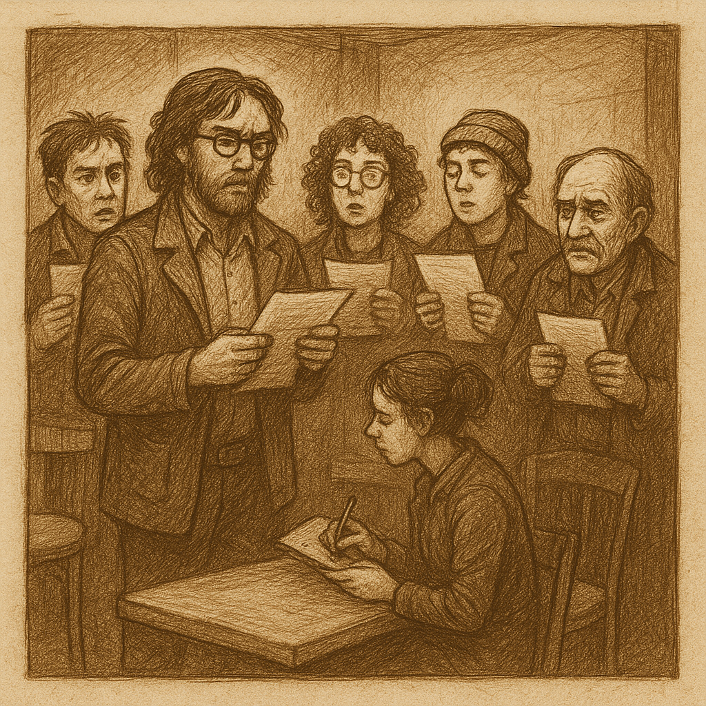 Muziekcafé in wilde paniek aan de lijn. Er heeft een coverbandje afgezegd. Dus hebben ze voorlezende schrijvers nodig. Ik krijg een gratis biertje en mag ook gratis naar het toilet. Aangezien het café op loopafstand ligt en ik geen andere plannen heb, kan ik niet weigeren. Zeggen ze tegen me. Ik geloof ze.