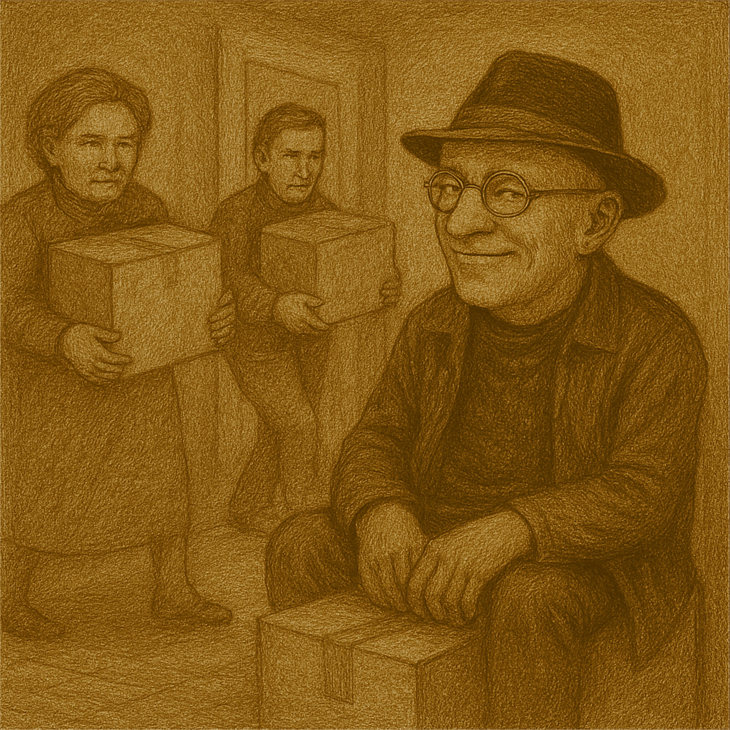 Achteraf is iedereen te moe voor bier. In de tuin zitten we uit te puffen en alle sjouwers zitten aan het water. Iedereen zweet, behalve de tuinbioloog. Die geniet van zijn bier. De tuinbioloog draait voor zo’n verhuizinkje zijn hand niet om. Geamuseerd beziet hij de zwetende zwoegers. Sloebers, zo valt zijn oordeel van zijn gezicht te lezen. Hij staat op om een nieuw biertje te pakken. Er staan er genoeg koud.