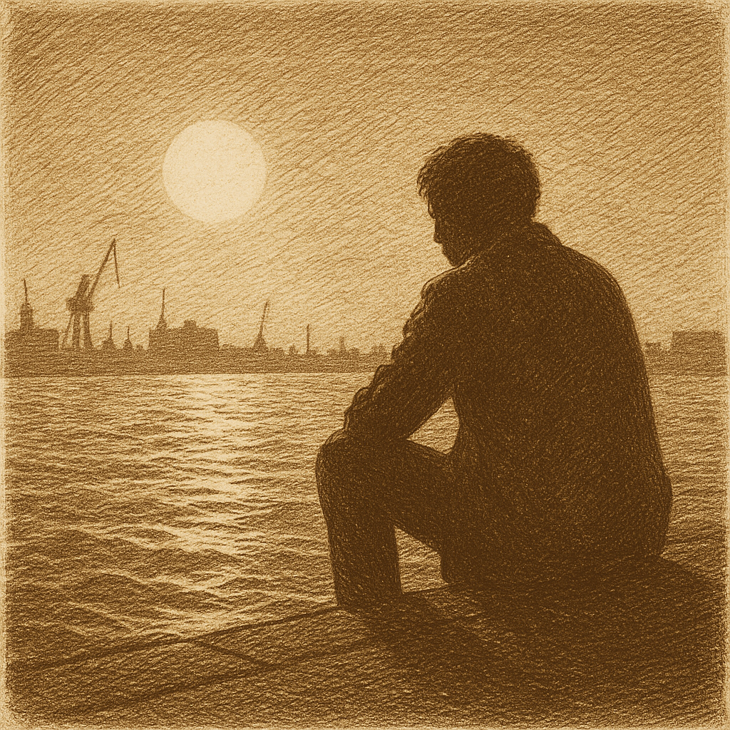 Op de waterkade ging hij even zitten en bungelde zijn benen boven het water. Beneden keek een kabbelende Karel, verstoord in de golven, naar hem omhoog. Als hij heel strikt de natuurwetten toepaste, was dit een reflectie van licht dat eerst op hem gekaatst had, daarna op het water, dus een Karel uit het verleden. Verleden Karel keek echter even monter als hoe Huidige Karel zich voelde. Zo zie je maar weer.