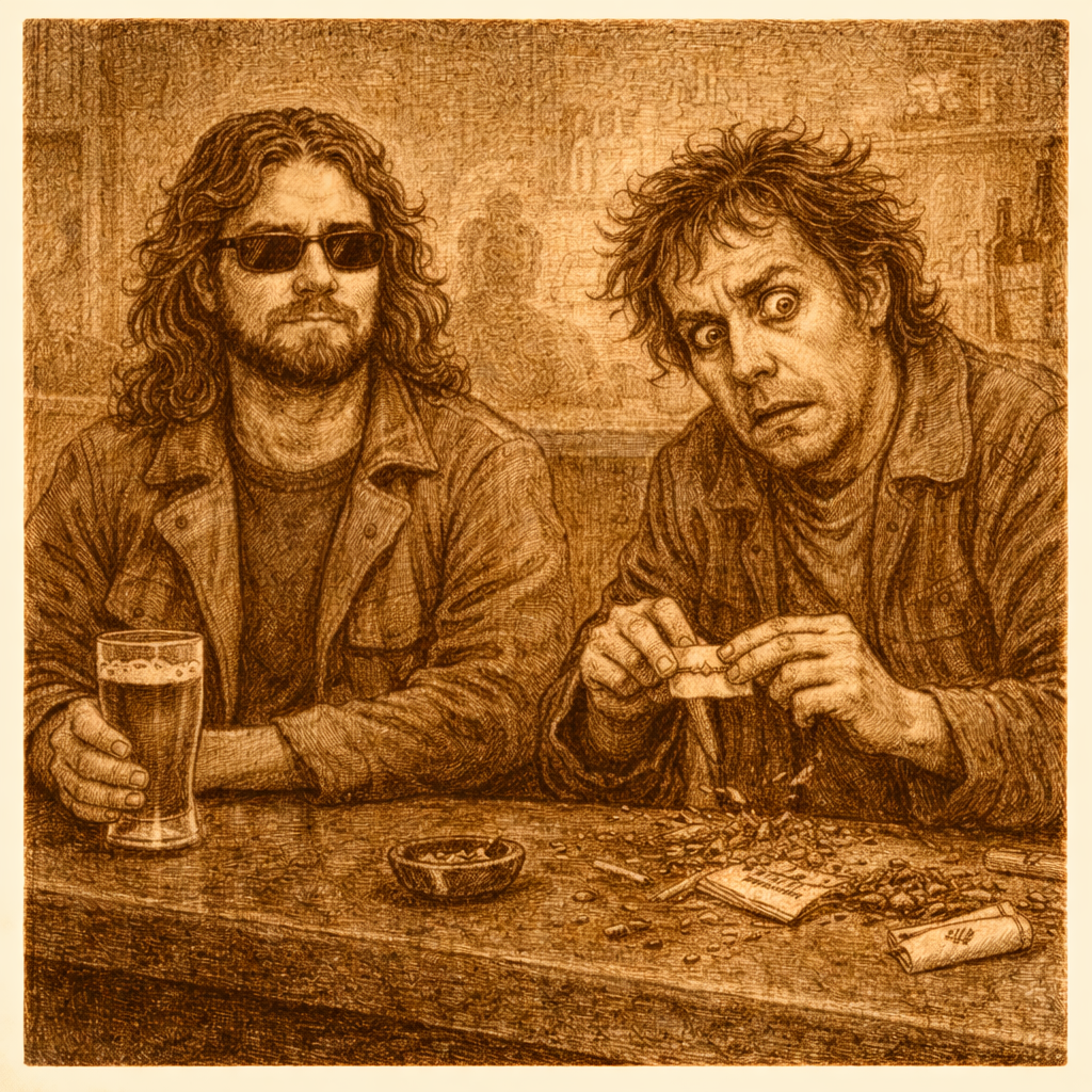 Mijn vriend prutst een slordig sjekkie in elkaar en likt beverig het randje. Kruimels op de bar. Ik leun iets zwaarder op mijn ellebogen om mijn rug meer rust te geven. Mijn vriend meent dat alle maatschappelijke vormen verrot zijn. Tegenwoordig, voegt hij er aan toe. Ik knik, maar eigenlijk meer om te erkennen dat ik hem gehoord heb. Online zou ik op een duimpje hebben geklikt.