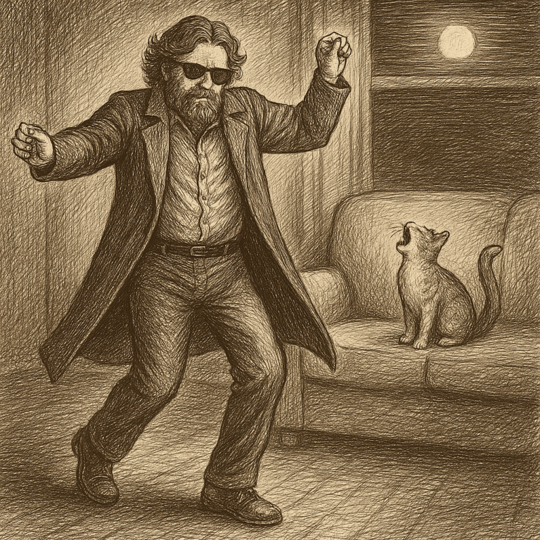 Ik geniet met volle teugen. Het overkomt me vrijwel nooit, regen. De grap is dat ik een huisgenoot had die, als hij maar één voet buiten zette, bijna gegarandeerd een stortbui op zijn dak kreeg. Stapte ik vervolgens buiten, stralend blauw en zonlicht. En daar hou ik helemaal niet van. Doe mij maar regen, als het toch overdag moet zijn. Ik zie de mensen voorbij jakkeren vol waterstress. Wapperende poncho’s die het cinematisch effect alleen maar versterken. Heerlijk, dit.